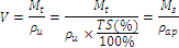 A densidade aparente, para um determinado teor de sólidos, foi obtida utilizando-se a densidade do lodo (úmido) para este mesmo teor de sólidos, conforme equação (3).