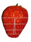 Os morangos foram fotografados após o acondicionamento dos mesmos em bandeja com revestimento em tecido preto, para melhor contraste dos frutos com o fundo e, para se corrigir os tamanhos, foi colocado um retângulo de papel de 5x5 cm, como referência (Figura 1).