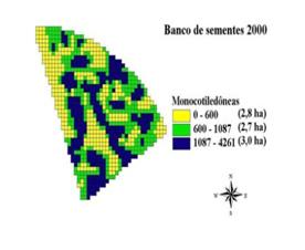 d) Sistema de mapeamento Os sistemas de mapeamento da colheita são capazes de armazenar as informações relativas à produtividade durante o processo da colheita, georreferenciando os dados e adicionando as características da safra colhida. Os mapas resultantes mostram explicitamente as áreas de variação de produtividade, como a produtividade é o fator determinante nas decisões de gerenciamento, estes mapas são usados para ratificar as decisões de gerenciamento e manejo do campo. Além do mapeamento de colheita, as ferramentas disponíveis na agricultura de precisão possibilitam também o mapeamento de plantas daninhas e em determinadas circunstâncias o mapeamento de pragas e doenças. Desde 1992, a colheita de grãos tem sido mapeada nos EUA usando sensores de massa e sistemas GPS para armazenar a posição. Estes sensores medem a umidade dos grãos, a mistura dos tipos de grãos e a colheita por área, determinado a quantidade de grãos da produtividade por acre. Na figura 12 são apresentados exemplos de mapeamentos de colheita e de plantas daninhas, que disponibilizam dados para o processo de rastreabilidade fornecendo subsídios para o uso racional de agroquímicos.