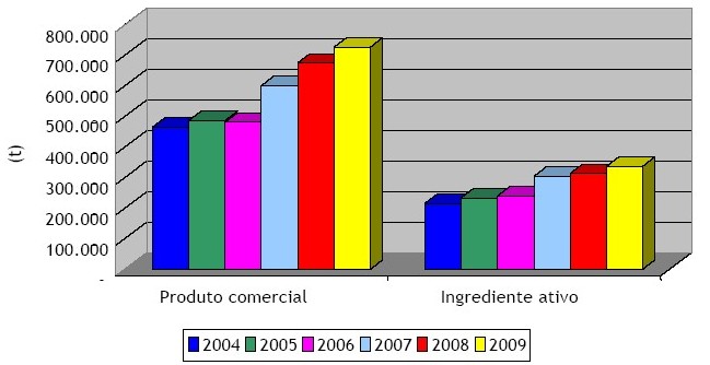 Em 2009, as quantidades totais vendidas de defensivos agrícolas no