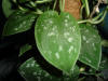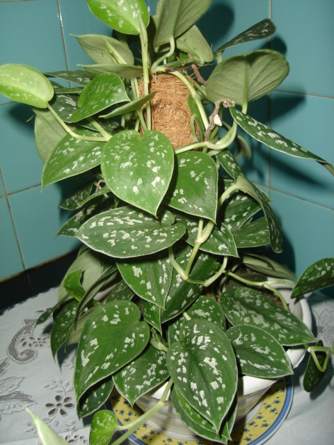 Família: Araceae Sub-família: Monsteroideae Tribo: Monstereae Nome Científico: Scindapsus pictus Hassk. Variedade: argyraeus Nome Comum: Satin Pothos Origem: Ilhas Salomão (Malanésia) e Indonésia Descrição: Planta muito delicada, atingindo cerca de 30 cm de altura. Folhas simples, glabras, cordiformes, verde escuras com manchas desuniformes prateadas e margeadas por bordas também da cor prata, medindo até 9 x 5 cm. Caule herbáceo, verde claro. Requer o solo consistentemente úmido na estação de crescimento e menos úmido no inverno. Exige pH de 5,6 a 6,5. Tolera sombreamento parcial. A variedade argyraeus é a mais conhecida da espécie. Uso: Cultivo em vasos como ornamental. É considerada como planta adequada para interior. Perigo: Todas as partes da planta são venenosas se ingeridas e deve ser mantida fora do alcance de gatos e crianças pequenas.